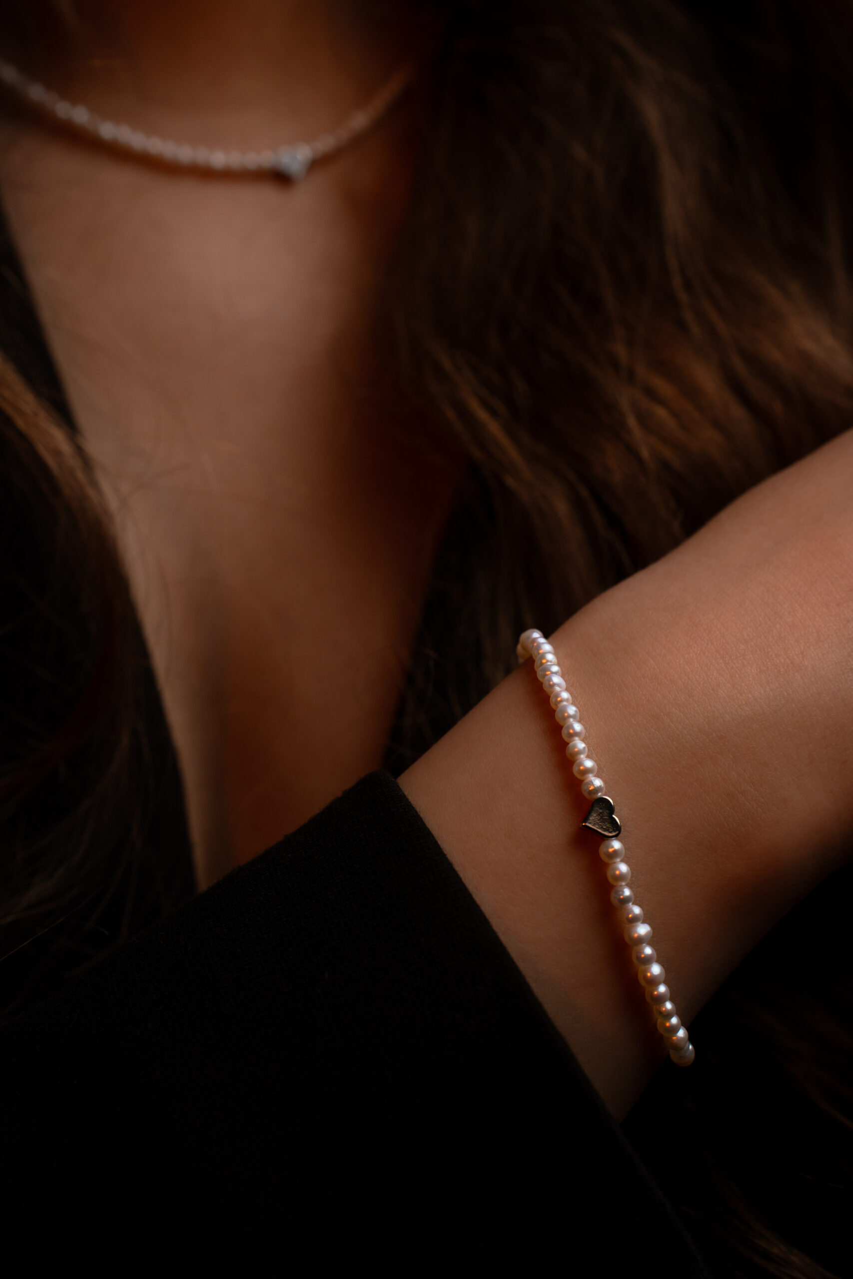 Realizată din perle naturale de cultură, fiecare brățară poartă o poveste discretă și elegantă. Înșirate manual pe un șnur fin și rezistent, perlele așază pe încheietură un strop de lumină, transformând fiecare brățară într-o piesă unică, la fel ca femeia care o va purta.