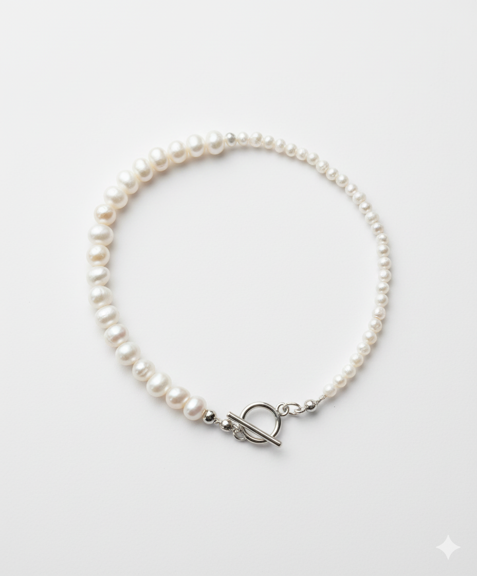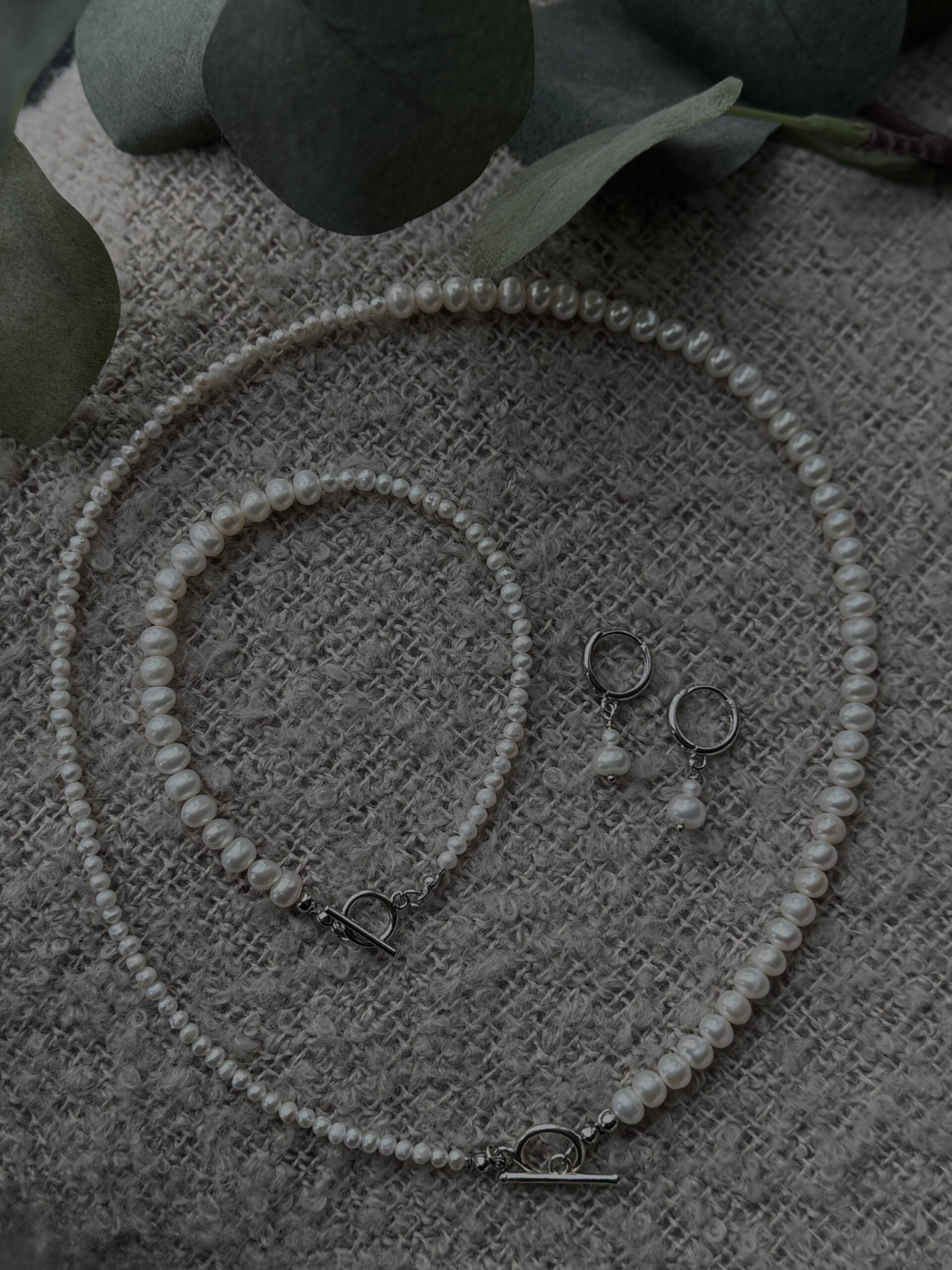 Realizată din perle naturale de cultură, fiecare brățară poartă o poveste discretă și elegantă. Înșirate manual pe un șnur fin și rezistent, perlele așază pe încheietură un strop de lumină, transformând fiecare brățară într-o piesă unică, la fel ca femeia care o va purta.