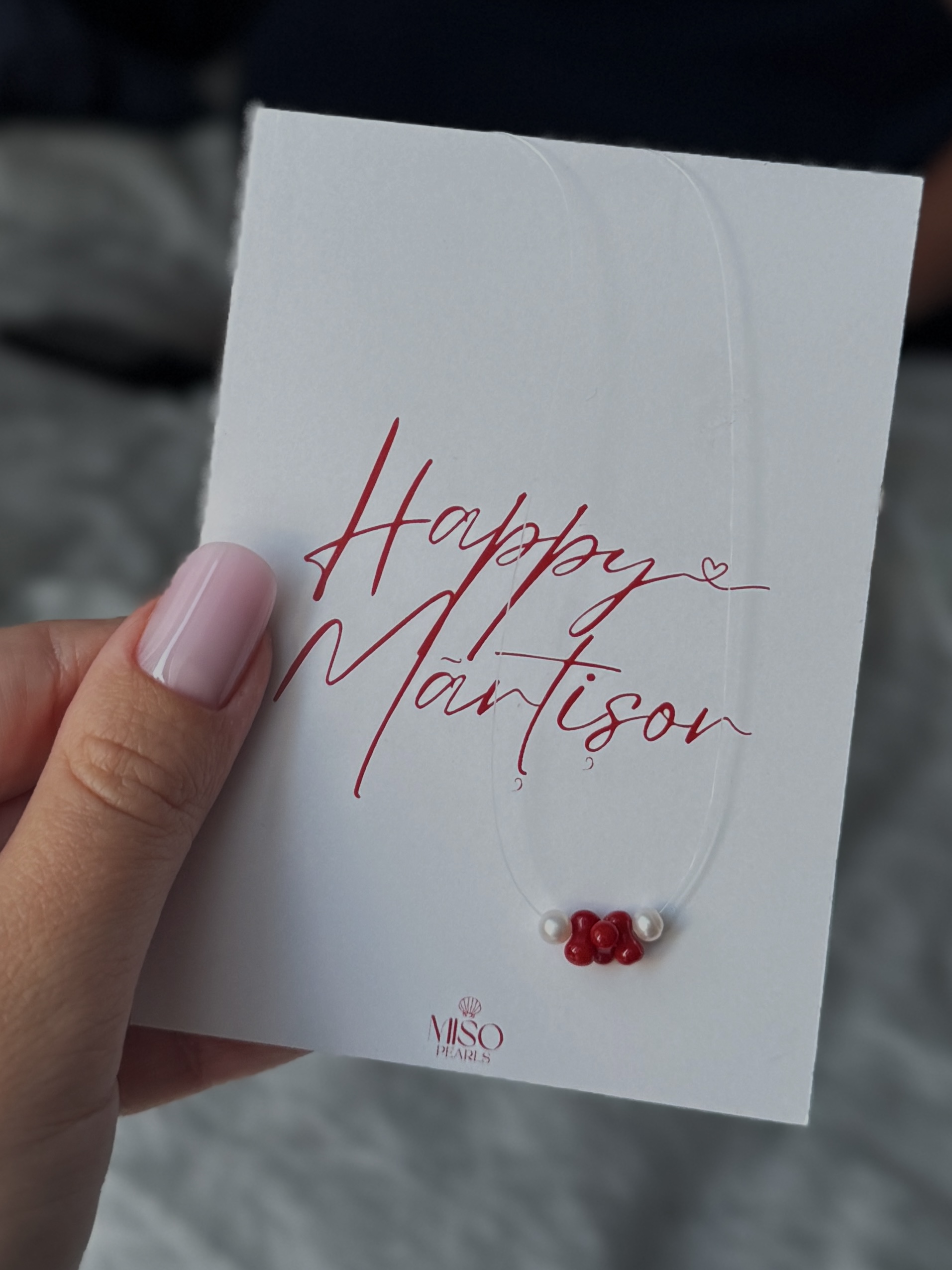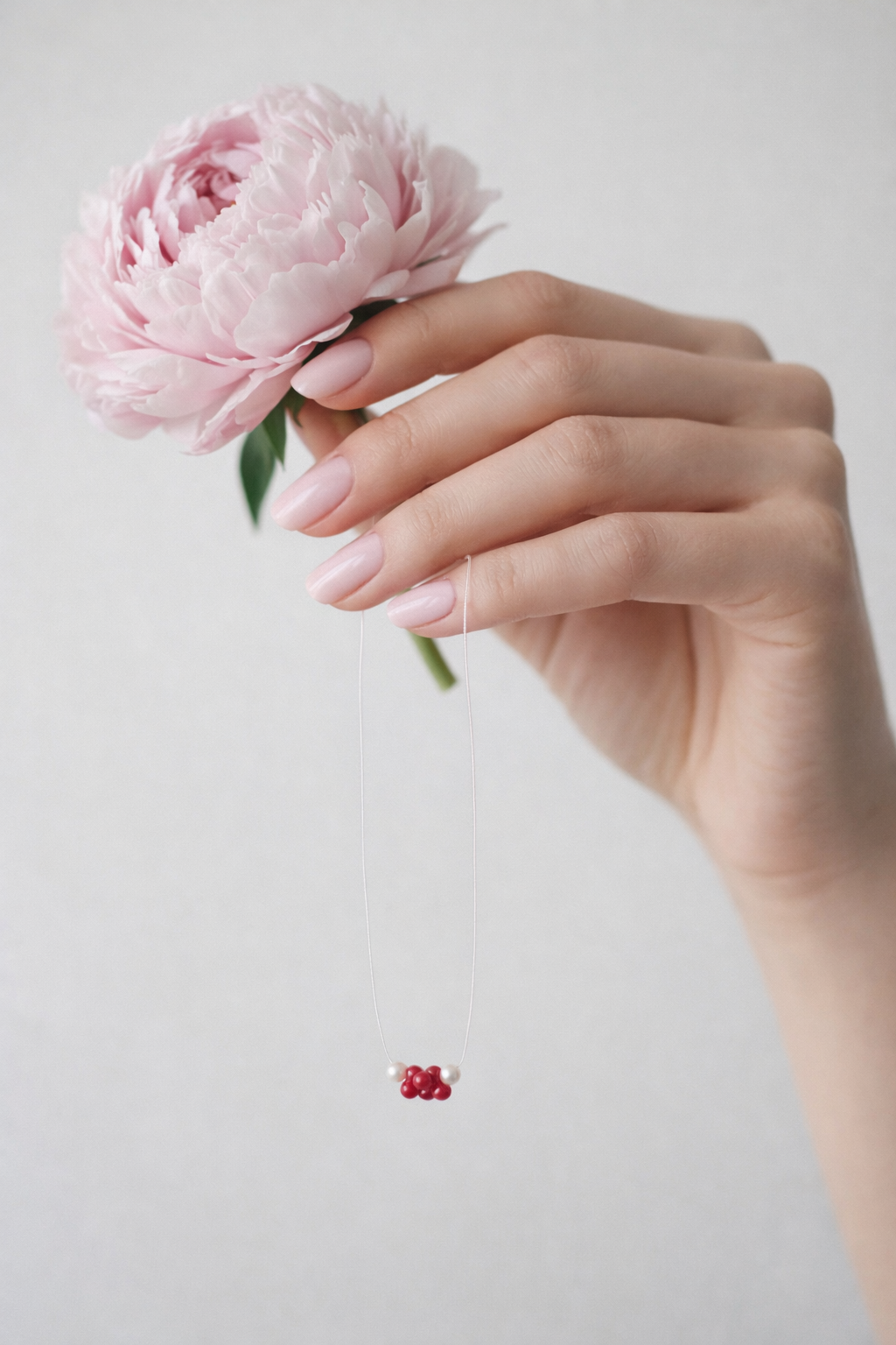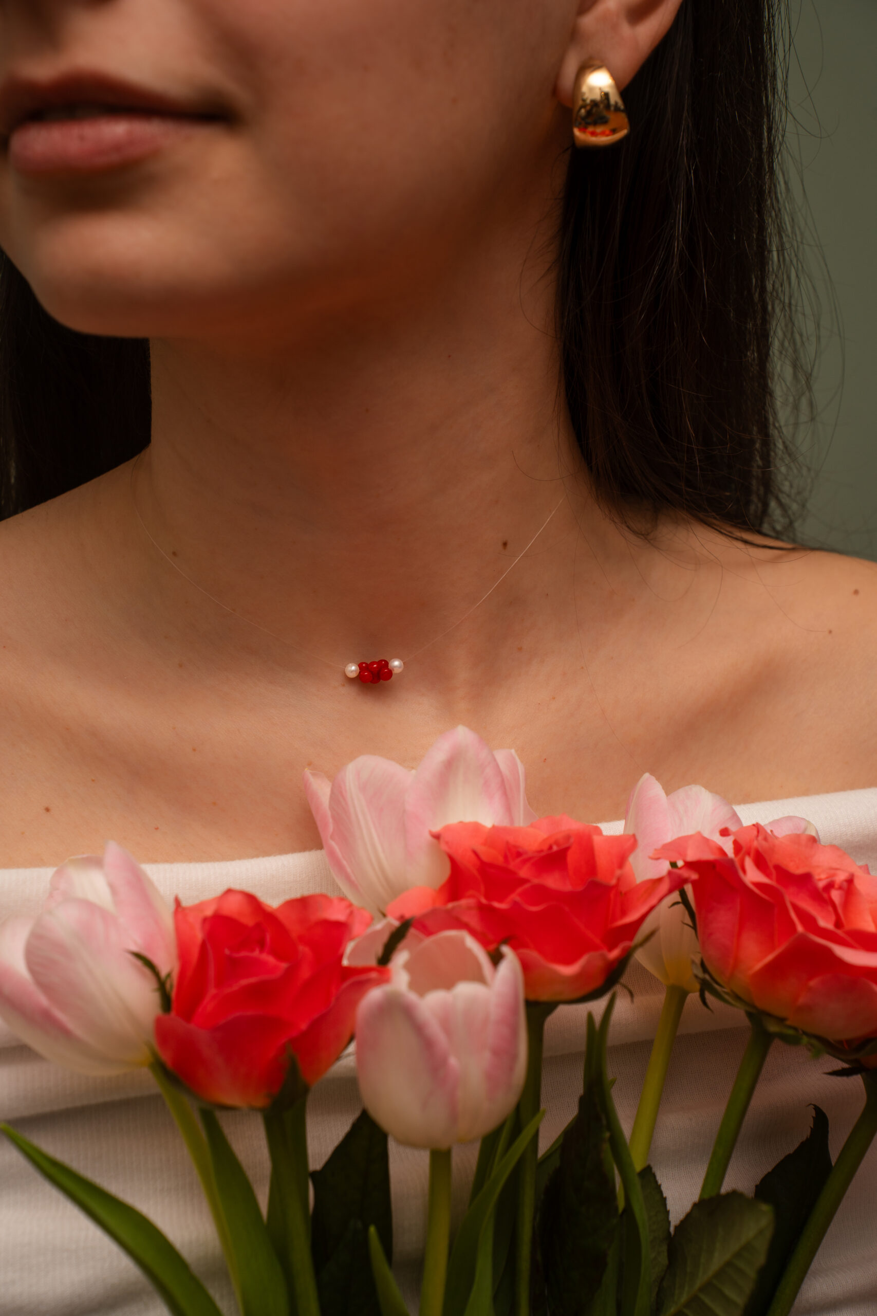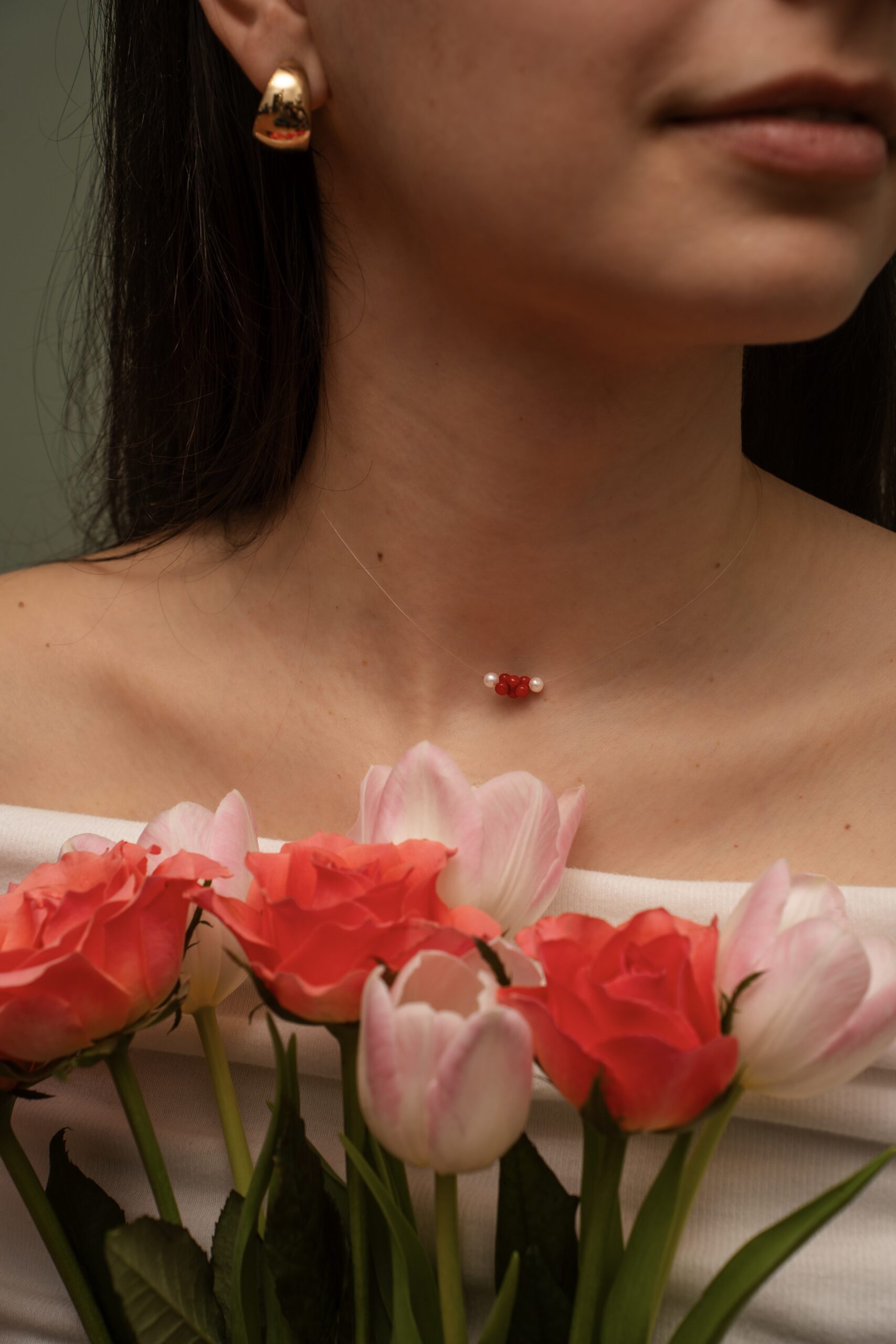 Realizat din perle naturale de cultură și coral, fiecare colier prinde forma unei povești diferite. Înșirate manual pe un șnur fin și rezistent de gută, perlele oferă confort și grație la fiecare purtare.