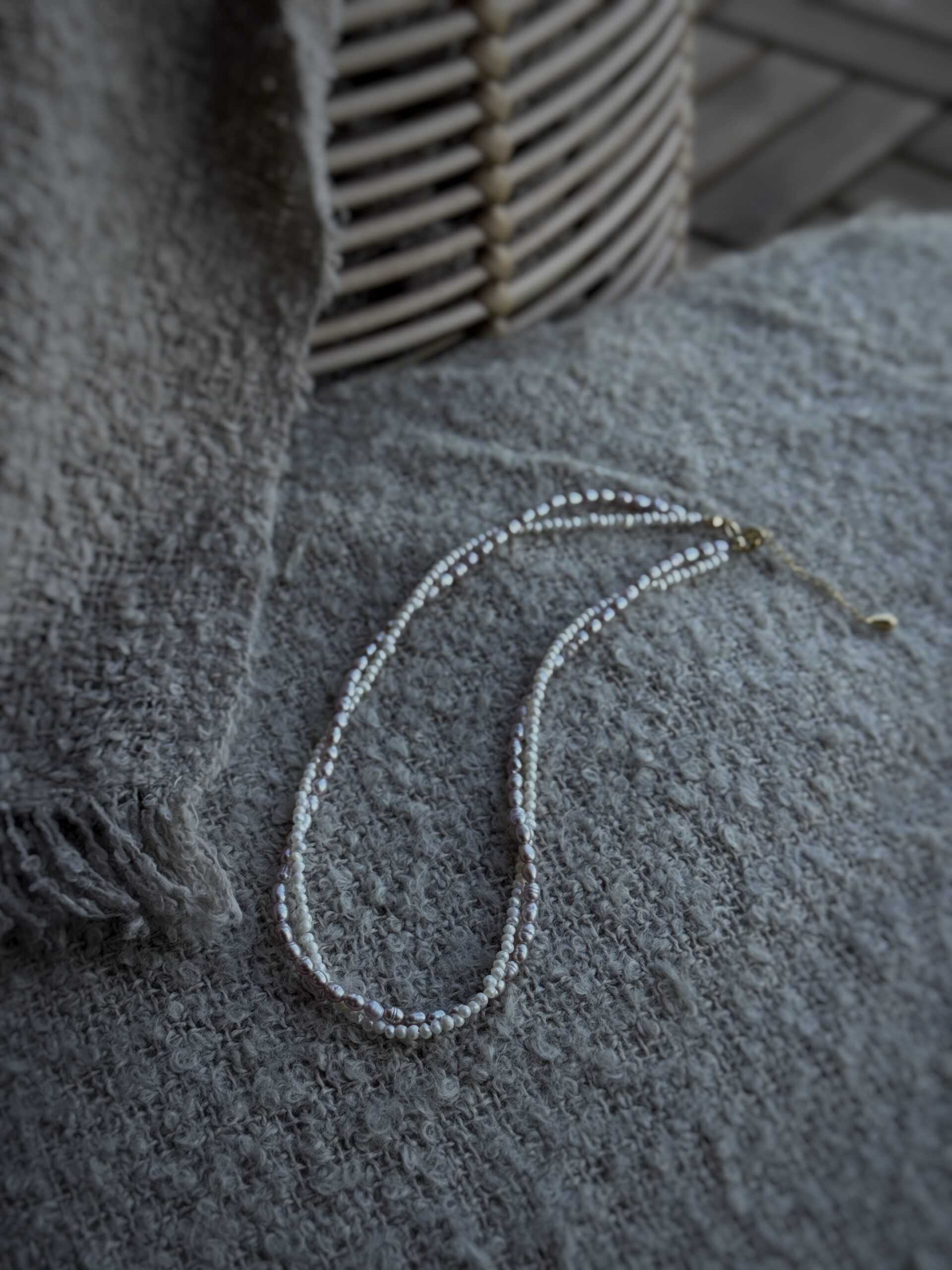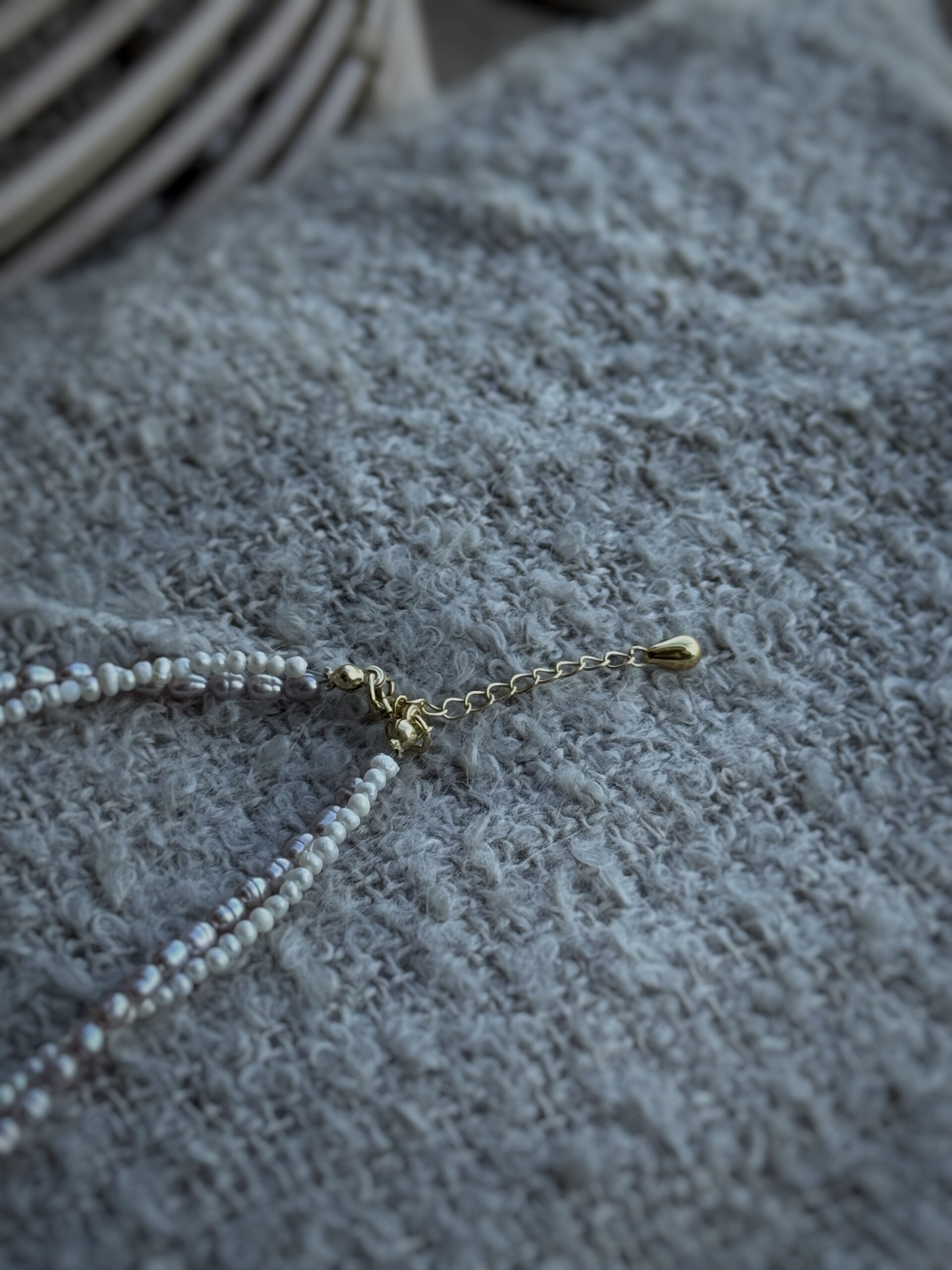 Realizat din perle naturale de cultură, fiecare colier prinde forma unei povești diferite. Înșirate manual pe un șnur fin și rezistent, perlele oferă confort și grație la fiecare purtare.